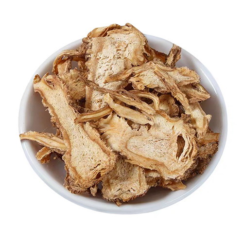 【 鑒別 】本品橫切面:木栓層為數(shù)列細胞。栓內(nèi)層窄,有少數(shù)油室。韌皮部寬廣,多裂隙,油室和油管類圓形,直徑25~160µm,外側(cè)較大,向內(nèi)漸小,周圍分泌細胞6~9個。形成層成環(huán)。木質(zhì)部射線寬3~5列細胞;導管單個散在或2~3個相聚,呈放射狀排列;薄壁細胞含淀粉粒。 粉末淡黃棕色。韌皮薄壁細胞紡錘形,壁略厚,表面有極微細的斜向交錯紋理,有時可見菲薄的橫隔。梯紋導管和網(wǎng)紋導管多見,直徑約80µm,有時可見油室碎片。